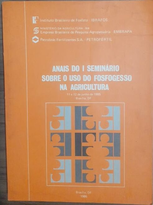 Anais do 1º Seminário sobre o Uso do Fosfogesso na Agricultura – 11 e 12 de junho de 1985 Brasília – DF. Fosfogesso como fonte de cálcio e enxofre, fosfogesso como condicionador do solo, aplicação e incorporação do fosfogesso ao solo, aspectos econômicos e difusão do uso agrícola do fosfogesso, debates das palestras, mesa-redonda com os autores das palestras, palestra de encerramento.