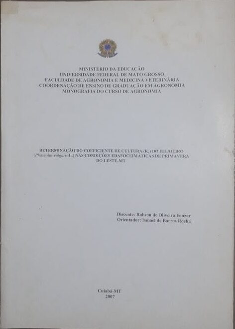Relatório de Estágio Supervisionado do Curso de Agronomia. Determinação do Coeficiente de Cultura (kc) do Feijoeiro (phaseolus Vulgaris L.) nas Condições Edafoclimáticas de Primavera do Leste-MT.