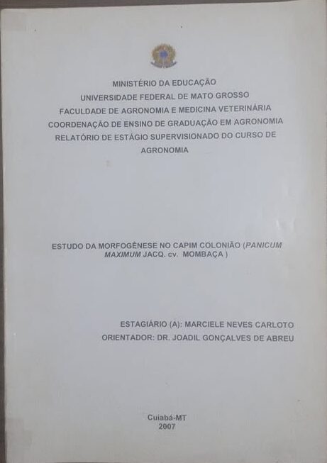 Relatório de Estágio Supervisionado do Curso de Agronomia. (Panicum Maximum Jacq. cv. Mombaça)