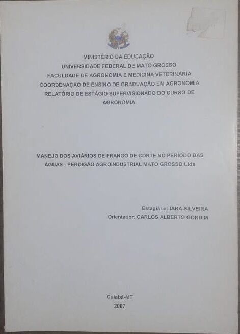 Relatório de Estágio Supervisionado do Curso de Agronomia. Manejo dos Aviários de Frango de Corte no Período das Águas – Perdigão Agroindustrial Mato Grosso LTDA.