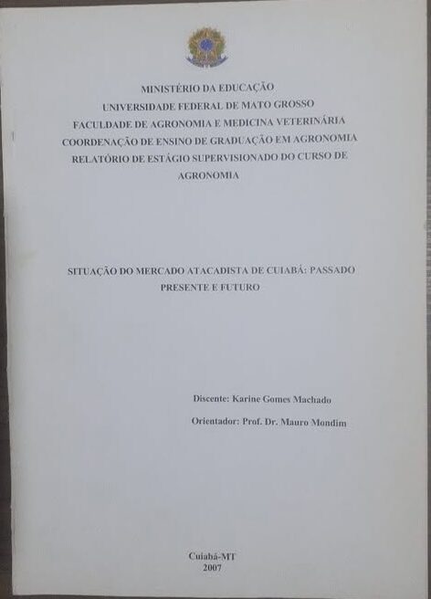 Relatório de Estágio Supervisionado do Curso de Agronomia. Situação do Mercado Atacadista de Cuiabá Passado Presente e Futuro.